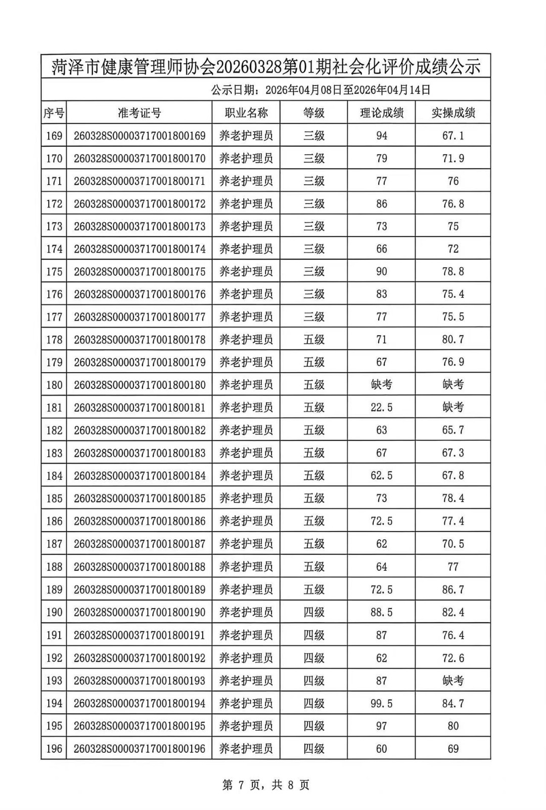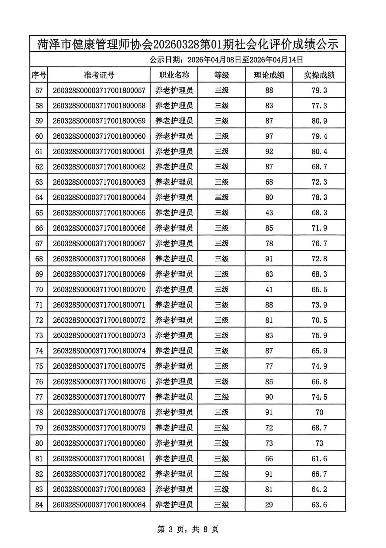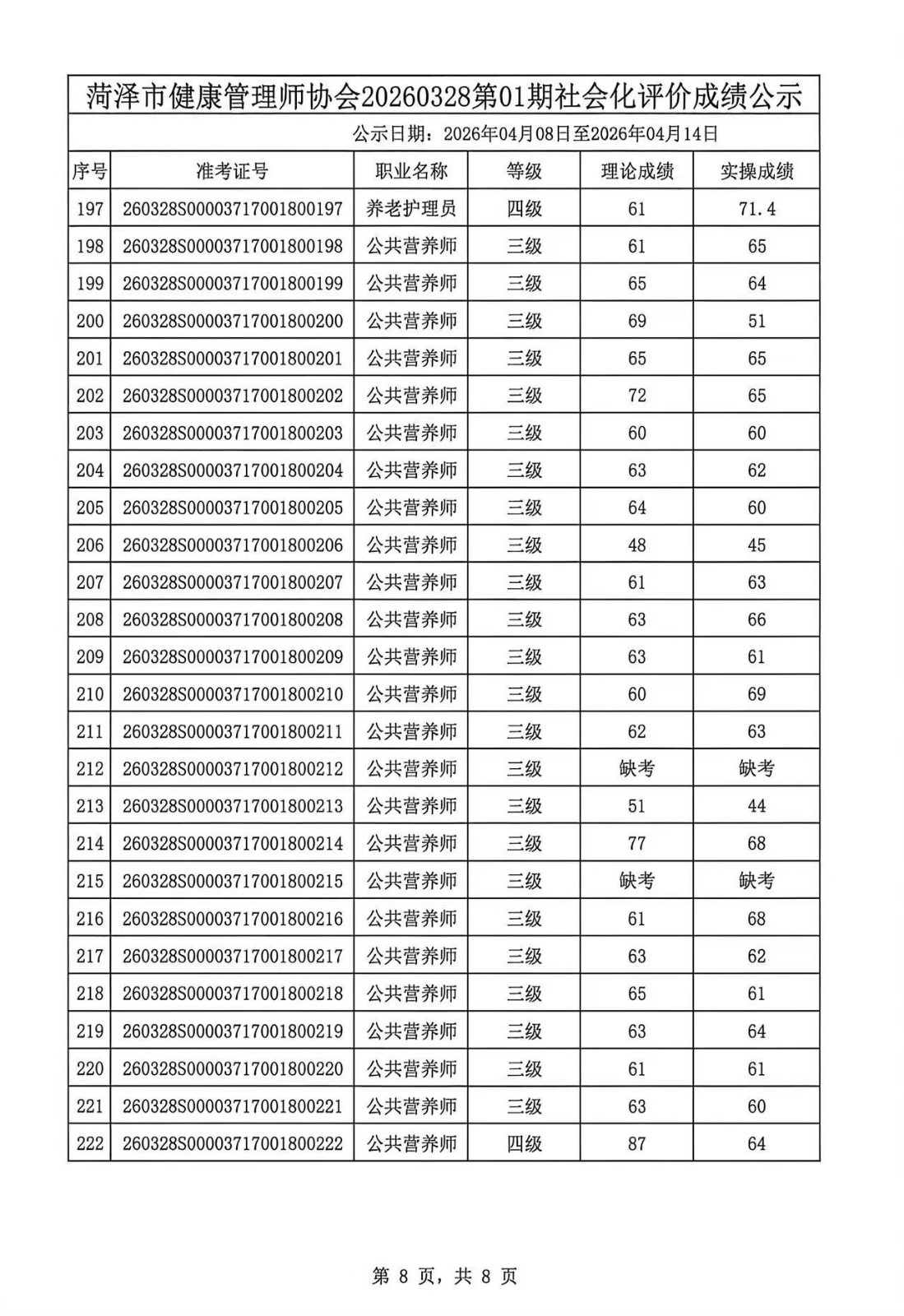 菏泽市健康管理师协会20260328第01期社会化评价成绩公示。