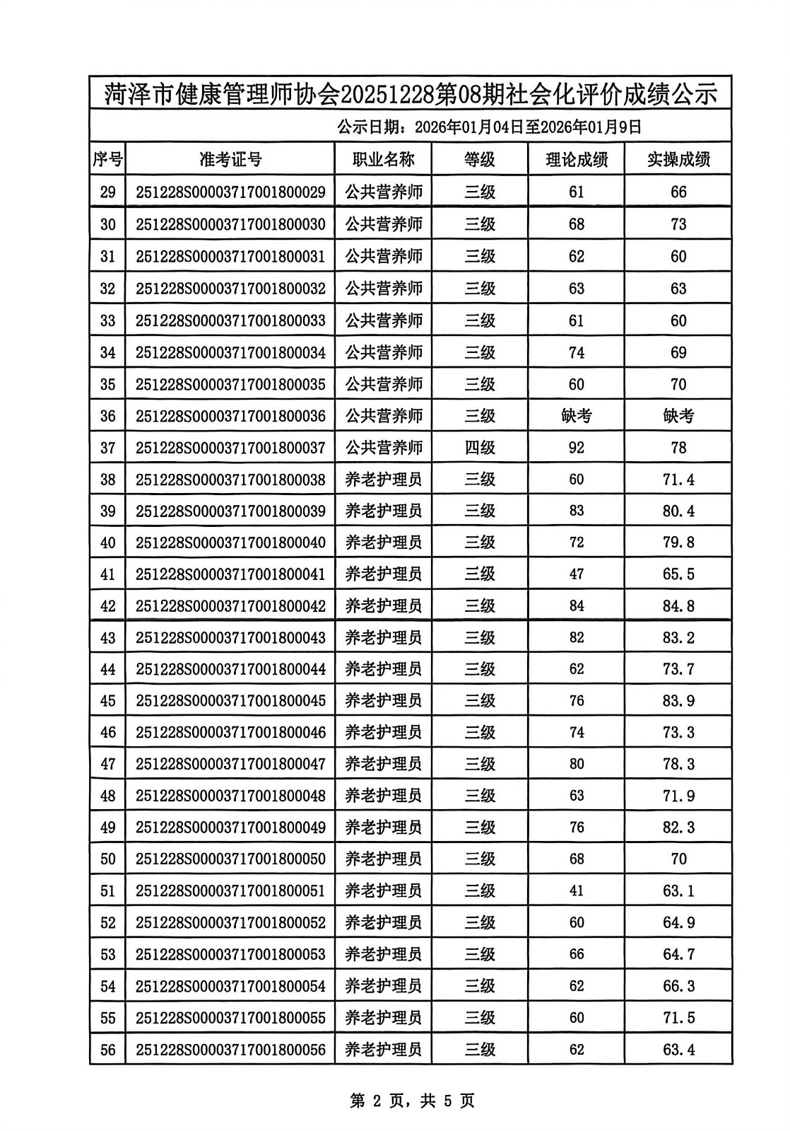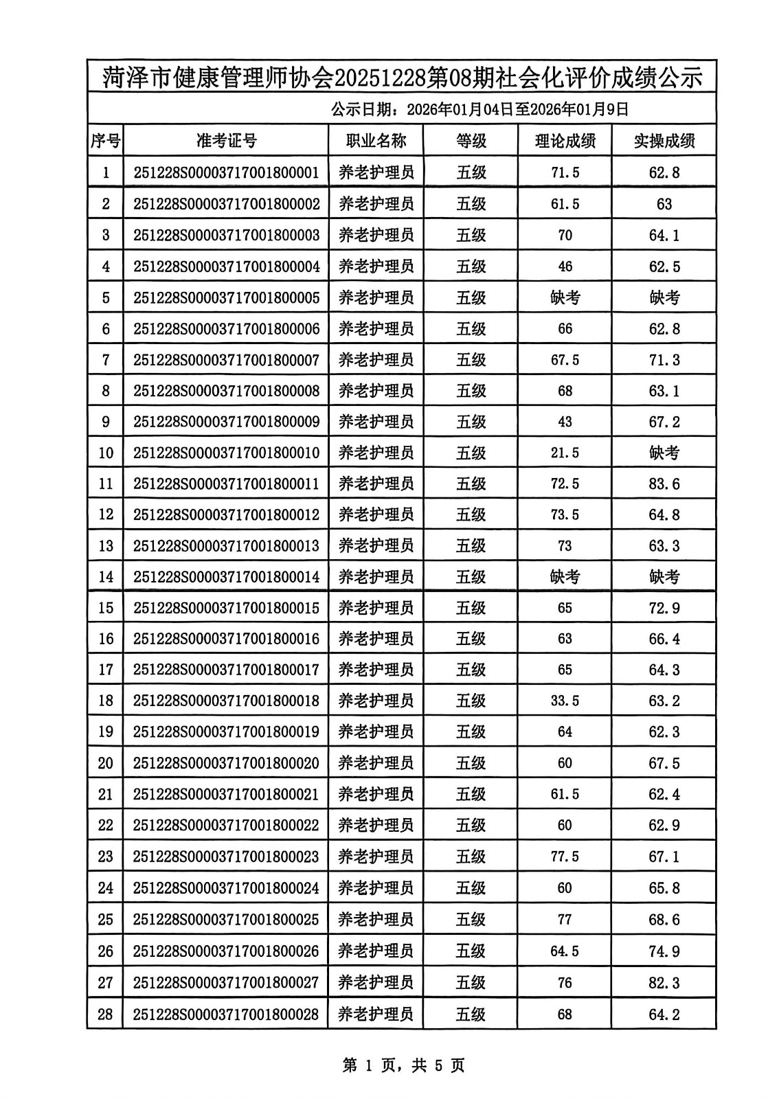 菏泽市健康管理师协会20251228第8期社会化评价成绩公示。