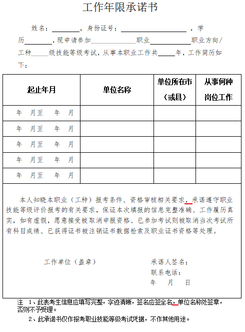 (4)申报条件要求满足一定工作年限的,需提交从业单位出示的《工作年限证明》(附件2);