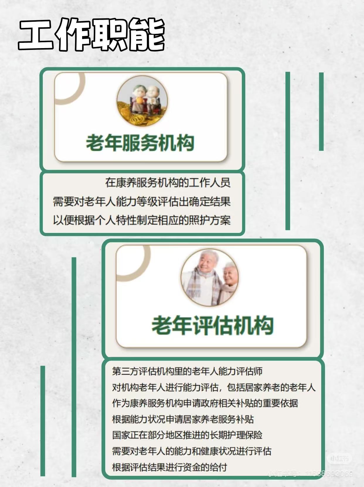 资质方面,要求依法设立,具有独立承担民事责任能力的企事业单位或社会组织,业务范围包括老年人能力评估类相关内容,能够独立开展老年人能力评估工作,无重大违法记录,未被列入严重违法失信名单。符合条件的基层医疗机构、长期护理保险定点失能等级评估机构经申请可确定为老年人能力评估机构。